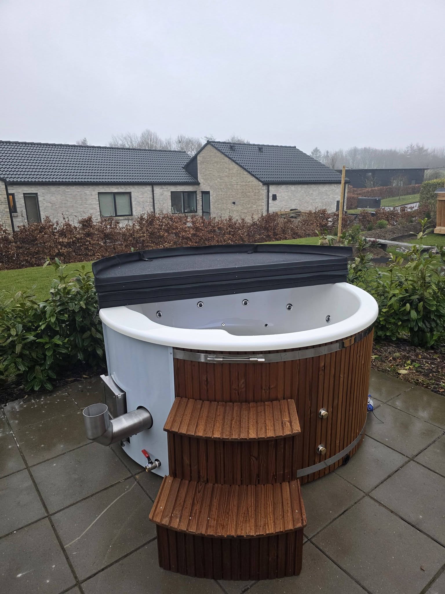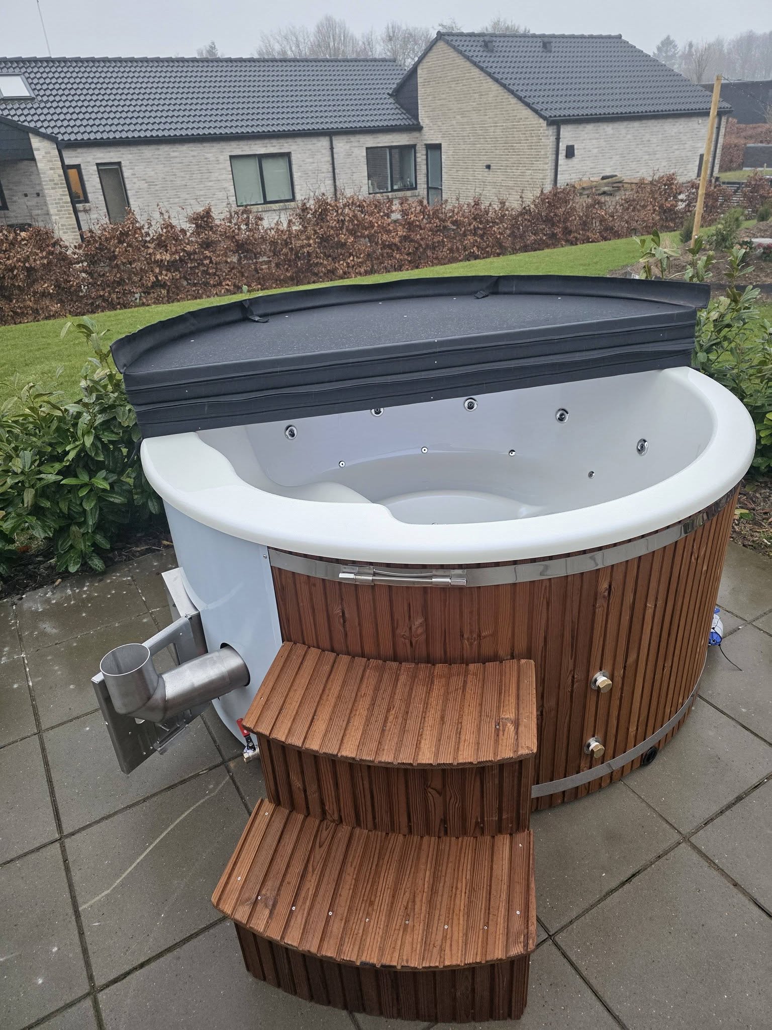 Lokaliseringsassistance: Hvis ønsket, kan leveringsteamet hjælpe med at finde den ideelle placering for spabadet/saunaen. Vi rådgiver baseret på faktorer som adgangsforhold, forsyningstilgængelighed og sikkerhed.